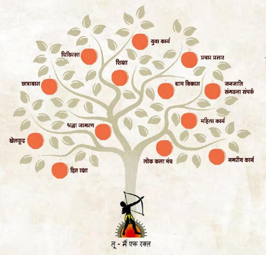 Janjati Kalyan Ashram’s Tribal welfare activities are divided into 14 different verticals or Aayams. Each Aayam is headed by an Aayam Pramukh (आयाम प्रमुख) and supported by Karyakartas and volunteers. Several professionals such as Doctors, lawyers, teachers, bankers, entrepreneurs also voluntarily contribute towards these activities.